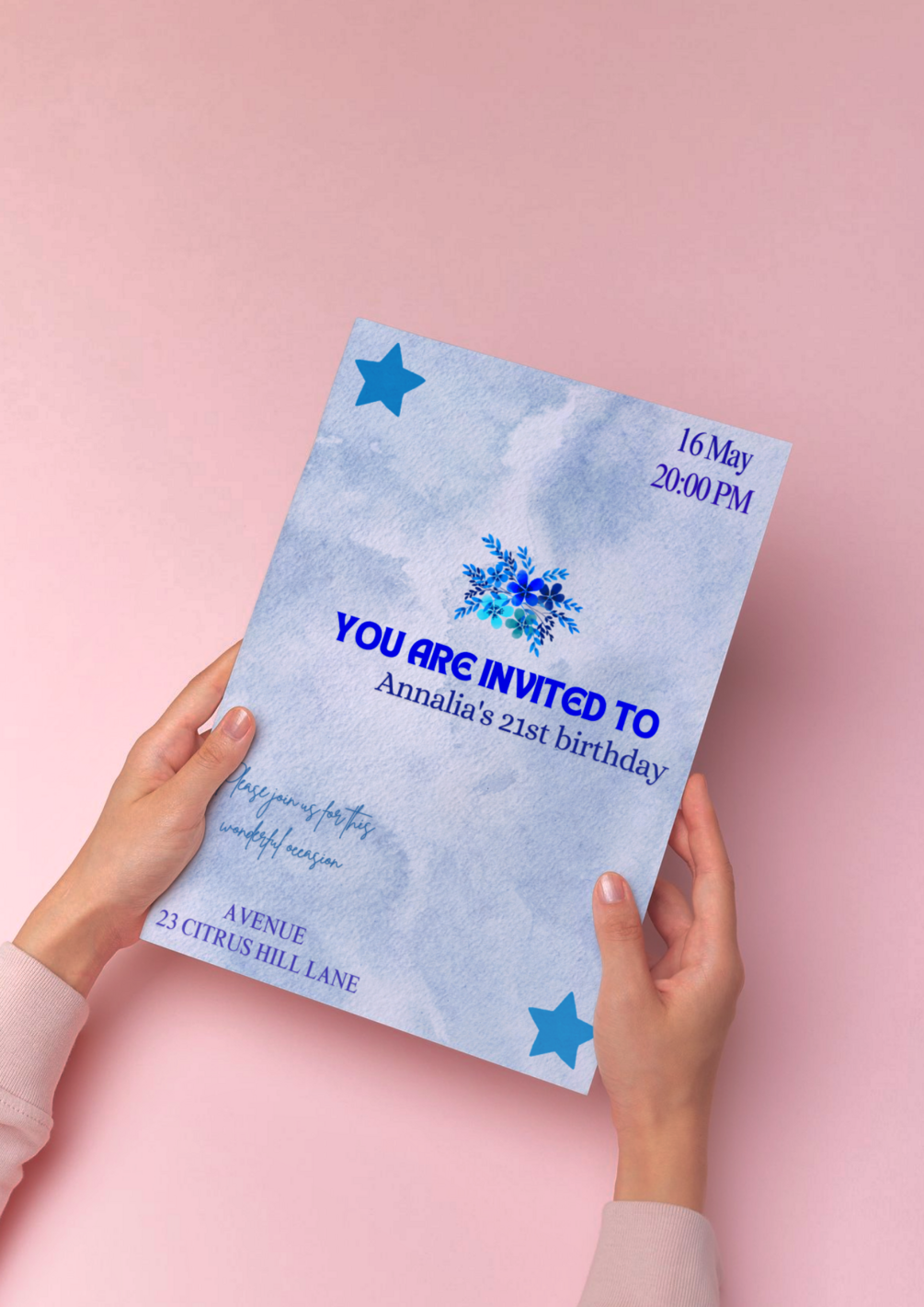 Digital Product | Personalized Blue Birthday Invitation – Printable and Customizable